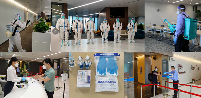 6月6日,因疫情关闭两个多月的中国大地保险上海总部职场,终于迎来正式复工。为保障总部职场顺利开放,总部行政部门与第三方服务人员提前进入职场,并对职场内安全防疫事项进行了培训及演练。同时,职场内还设置了健康观察室、数字哨兵、立式测温仪、电动喷雾器、高压喷雾器等防疫用品和设备,保障职场健康环境,随时应对紧急事件。