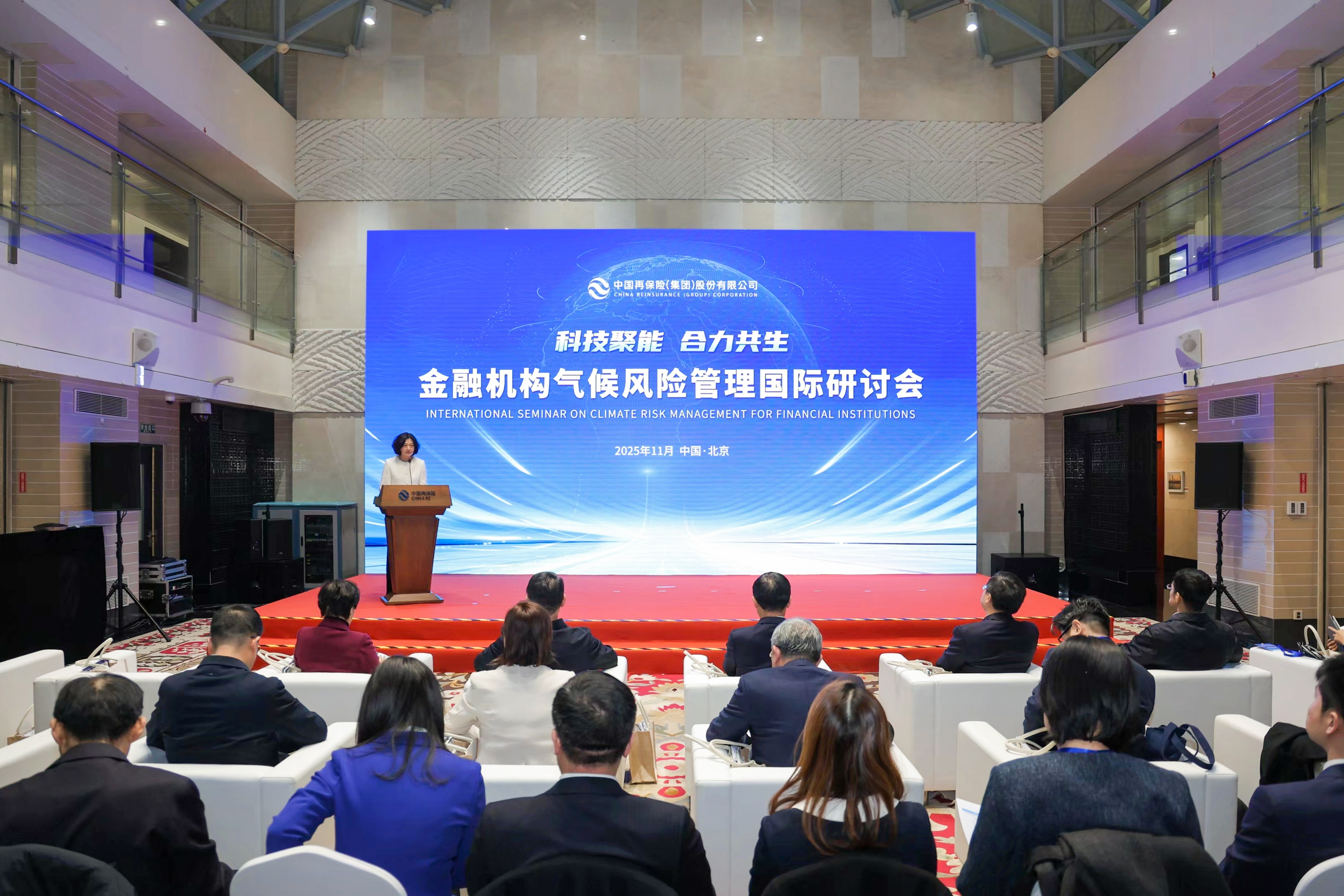 11月6日,“科技聚能,合力共生——金融机构气候风险管理国际研讨会”在中国再保险大厦举行。研讨会采取线上线下相结合的方式,来自财政部、中国人民银行、国家金融监督管理总局等相关部委、科研院所以及金融企业的各界嘉宾齐聚一堂,共同探讨金融机构气候风险管理,为构建具有韧性和可持续性的金融体系贡献智慧与力量。